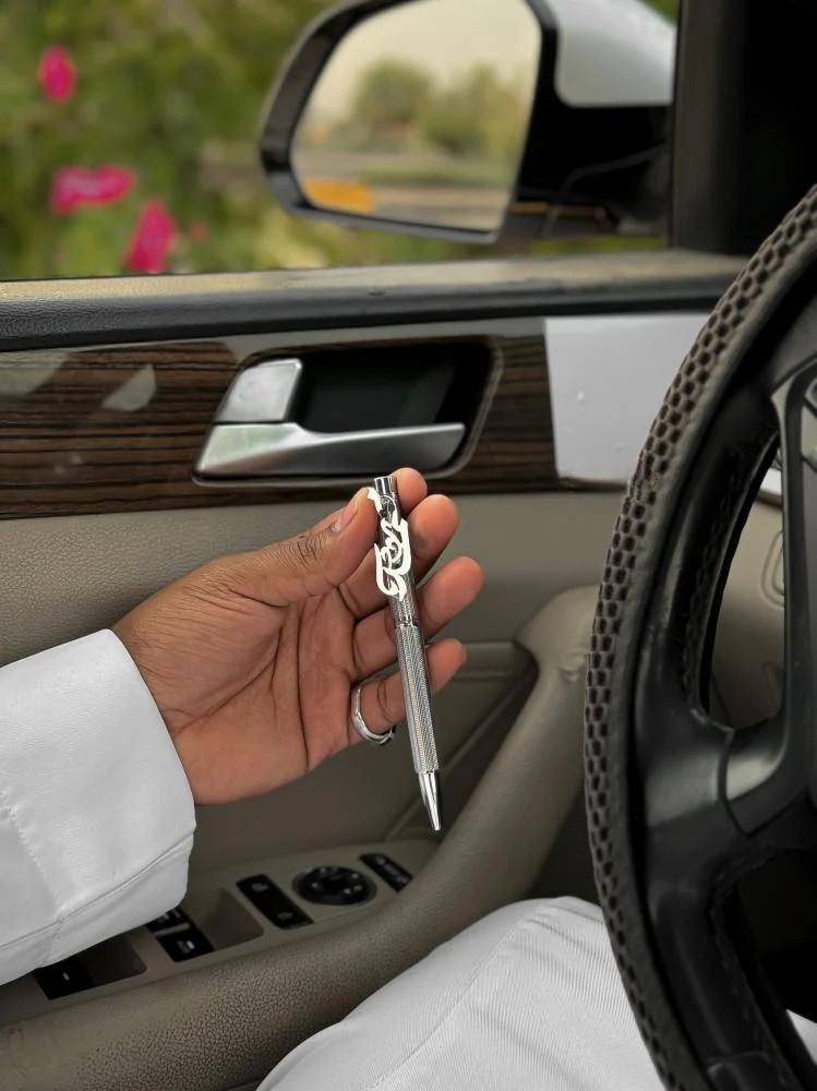 قلم حبر أزرق كويتي من المعدن بطلاء ذهبي أو فضي أصلي بتصميم مزخرف مريح لليدين. قلم كتابة فخم وأجمل هدايا رجالية من ويفا. أقلام كويتي جودة عالية وتصميم ناعم